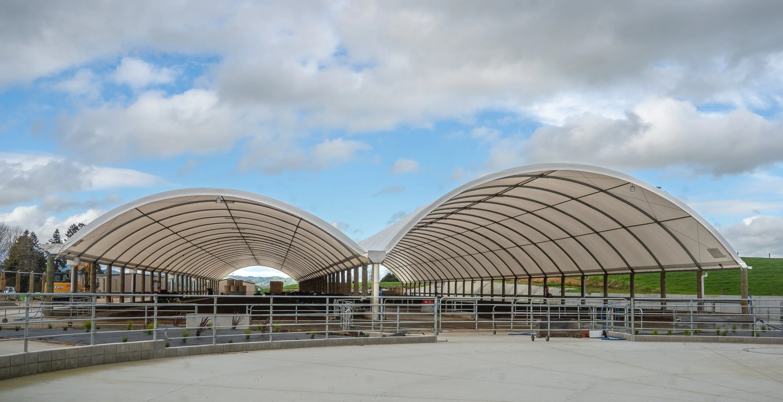 From the road, the SmartShelters look standard. But think again.They offer the biggest clear spans available within industry (6m to 45m in width times any length]. There are three sheds –two for the cows built in 2023 –which are each 18m wide x 125m long (with some storage space at one end). The calf shed–with some storage, which was built in 2025 and sited alongside them –is 18m wide x 85m long. The cows have four feed faces, which is uncommon and offers efficient feeding on surface area to volume. The space allows 800mm per cow. They have a convenient 6m concrete feed lane for a mixer wagonto drivethrough the centre and deliver feed, and then there is concrete where the cows stand to eat at the feed face (which makes it easy to clean). SmartShelters’ Brett Cottle confirmed that an estimated 70-80% of all manure is dropped where cows eat. Brett said, “We did the design and construction,and what makes this unique is having the mixer wagon lane inside. Most farmers would build two separate structures, but by going this way, Phil has achieved four feed faces –which maximises the feeding opportunities for this herd. He has also included some storage for hay and equipment at one end. He’s pushing for more production and cow comfort, and this certainly addresses that.” The cows are bedded on a compost bedding, which is an active biological mass –rated among the most comfortable natural beddings for cows internationally when it’s well managed. The Richmond Downs’ team “rips” (or aerates)the bedding twice-a-day in the winter, and once-a-day in the summer to sustain its ideal 50-55% moisture level. The SmartShelters were the first stage of this build, which beganin2023.Phil said, “I decided to do that because it gives them shade in the summer and protection in the winter. Every month of the year is different. The cows spend anywhere from two to 20 hours a day in it.“You do need to know what you’re doing with the bedding, but it’s been amazing for us. This whole project is about animal welfare for me. It’s about what can I do for my girls,and, if I was a cow, what would I want?
